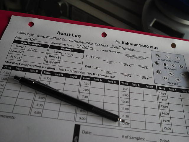 I found a great coffee roasting log on a another blog called The Coffee Minimalist. He shared his log with me so I’ve been using it to keep track of my roasts. Thanks Matt!