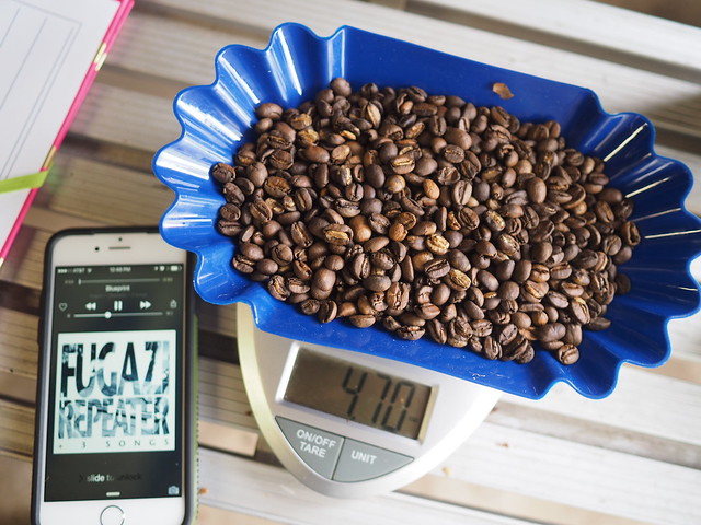 Inspired by Greg of Trystero Coffee I had some righteous tunes playing during the roasting. It helps to pass the time from not much happening to First Crack. After First Crack things seem to get hectic. Hopefully that will pass as I learn more. Then end result though is some good coffee. I did two roasts of pretty much the same profile. I tried to alter the second roast, but I think they are more similar than alike. That’s the fun part though. The learnin’. Oh, and the drinkin’ too.