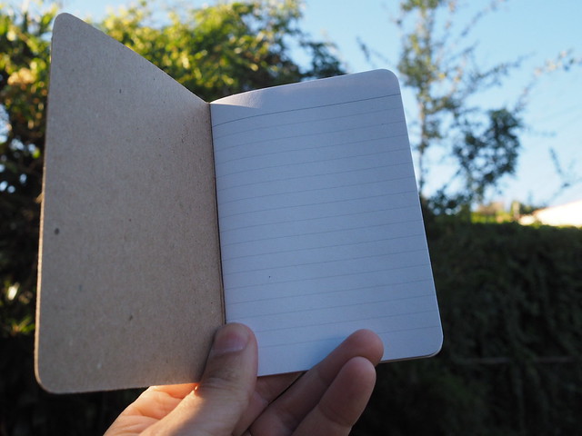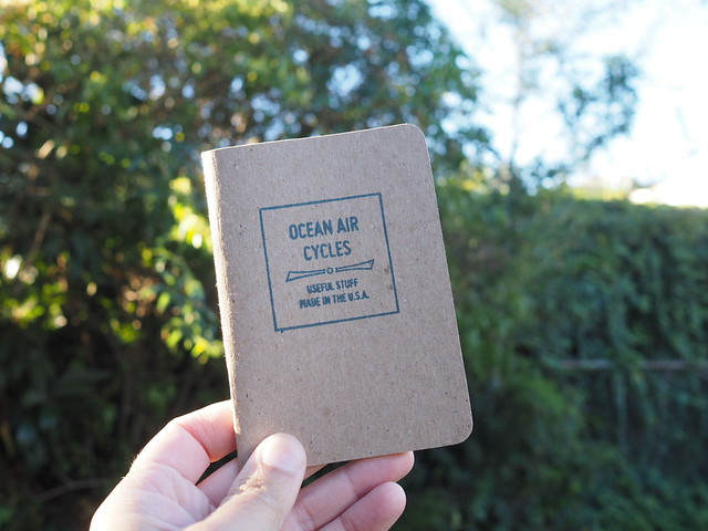 Rob of Ocean Air Cycles sent me down a set of his custom notebooks to try out. The Scout Books are smaller than the Field Notes books and they fit right into the Midori cover.