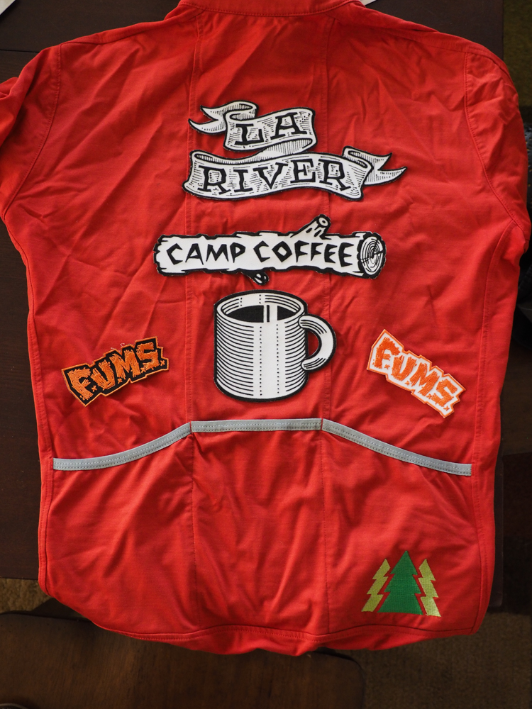 “So what can I do?” you say. Well I’ve got an antidote to the FOMO Kit Blues right here! With this patch kit you can make your own LA River Camp Coffee cycling kit! Got an old denim vest? PATCH IT! Got a worn out jersey? PATCH IT! Got a hole in your panniers? PATCH IT!